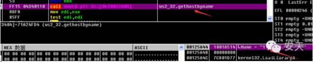 恶意代码进入线程后,将参数字符串(实际为连接服务器的地址)传递给连接服务器函数。该线程负责下载其他恶意代码。