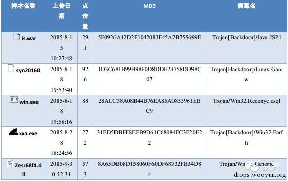服务器恶意代码病毒名统计如下: